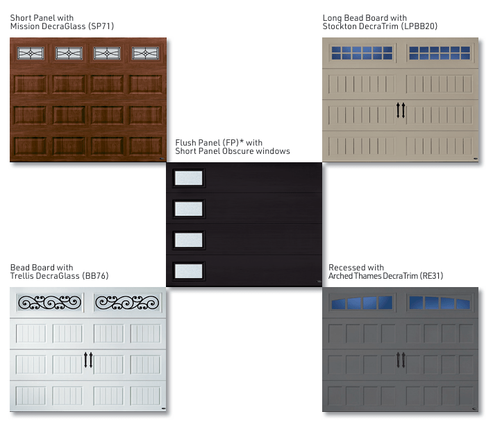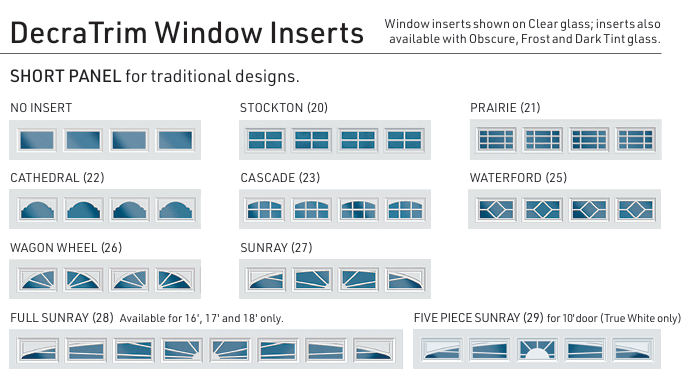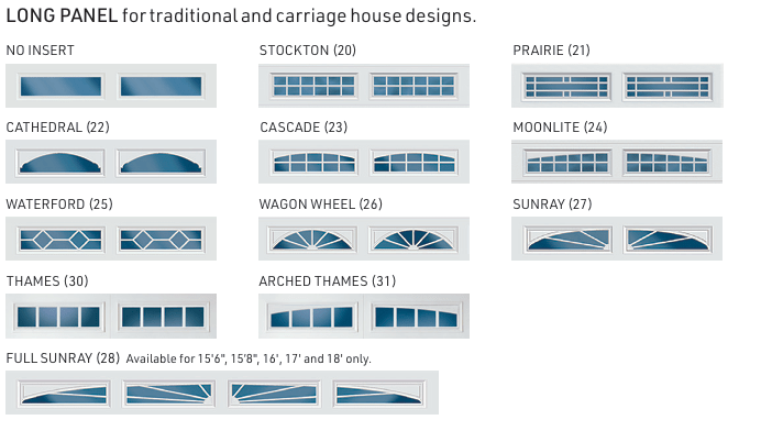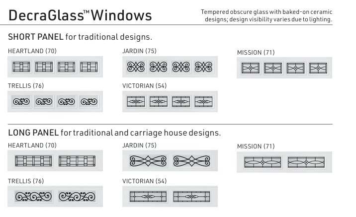 These glass panels are available in various shapes, layouts, and finishes, designed to complement both long panel and short panel garage doors.