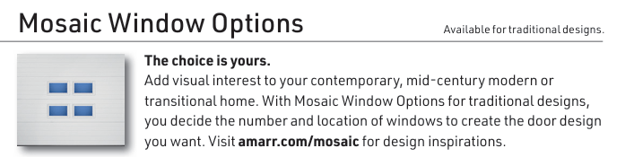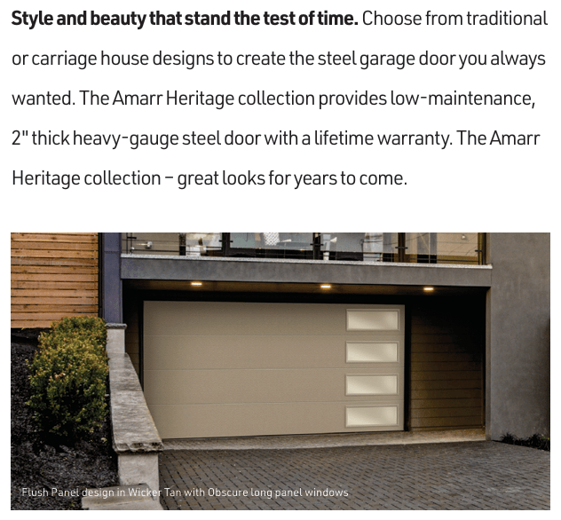 Personalize your garage door with your choice of color, design, materials, and window layouts. Every door is built to match your home or business.