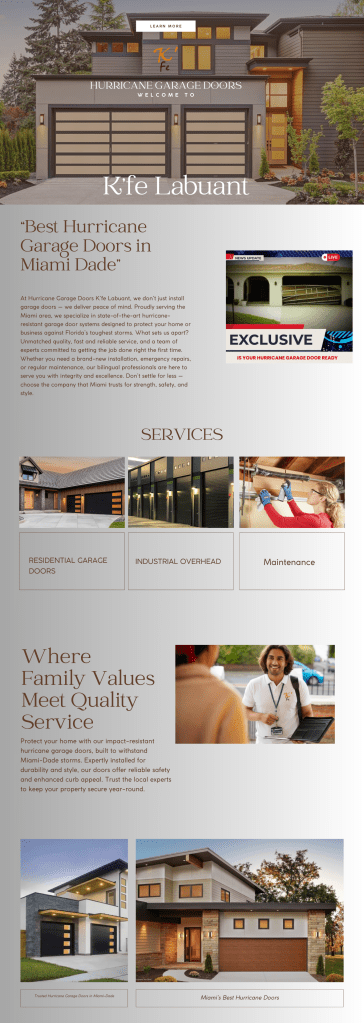 At K’fe Labuant, Hurricane Garage Doors we stand behind every job with integrity, precision, and a commitment to excellence. From hurricane-rated garage door installations to emergency repairs, our expert team proudly serves Miami-Dade and beyond — because protecting your property is more than our service, it’s our promise.